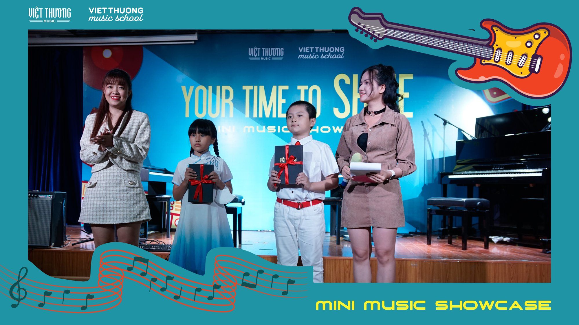 Là đối tác chiến lược của nhà sản xuất hàng đầu thế giới như Steinway & Sons, Fender, Roland, Kawai, Casio…, Việt Thương Music School luôn dạy và học trên những nhạc cụ chất lượng cao nhất và hiện đại nhất. Tất cả những giá trị phần mềm và phần cứng nói trên được kết chuyển thành những “giá trị quốc tế mang tâm hồn Việt Nam” qua những phiên bản tiếng Việt trong chương trình giáo dục và đào tạo của Việt Thương Music.