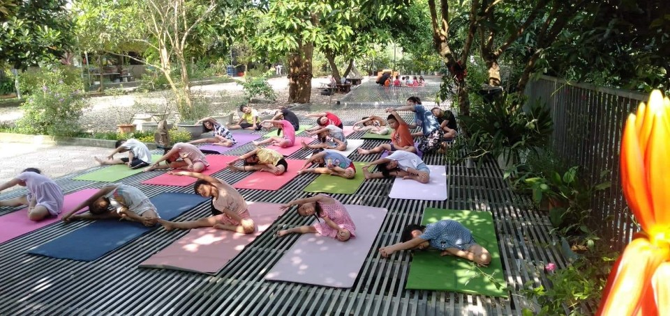 Từ những lớp học nằm ở lưng chừng đồi, các học sinh đổ về các khu học, khu ăn sáng để bắt đầu một ngày mới. Bữa ăn sáng diễn ra trong yên lặng, dù là các bé mầm non cho đến các anh chị lớn đều nhất loạt tuân thủ quy định "ăn uống trong tĩnh lặng" để tập trung và tận hưởng đầy đủ nhất về hương vị món ăn, để ăn trong sự biết ơn.