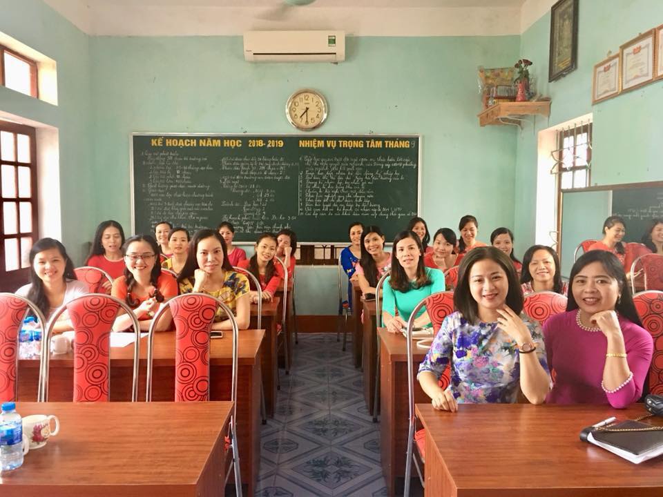 Nhà trường có 22 giáo viên đều đạt chuẩn và trên chuẩn. Phòng học, phòng chức năng, sân chơi đều đạt chuẩn, được trang bị đầy đủ các trang thiết bị hiện đại như tivi, máy chiếu, điều hòa đảm bảo cho công tác chăm sóc giáo dục trẻ.
