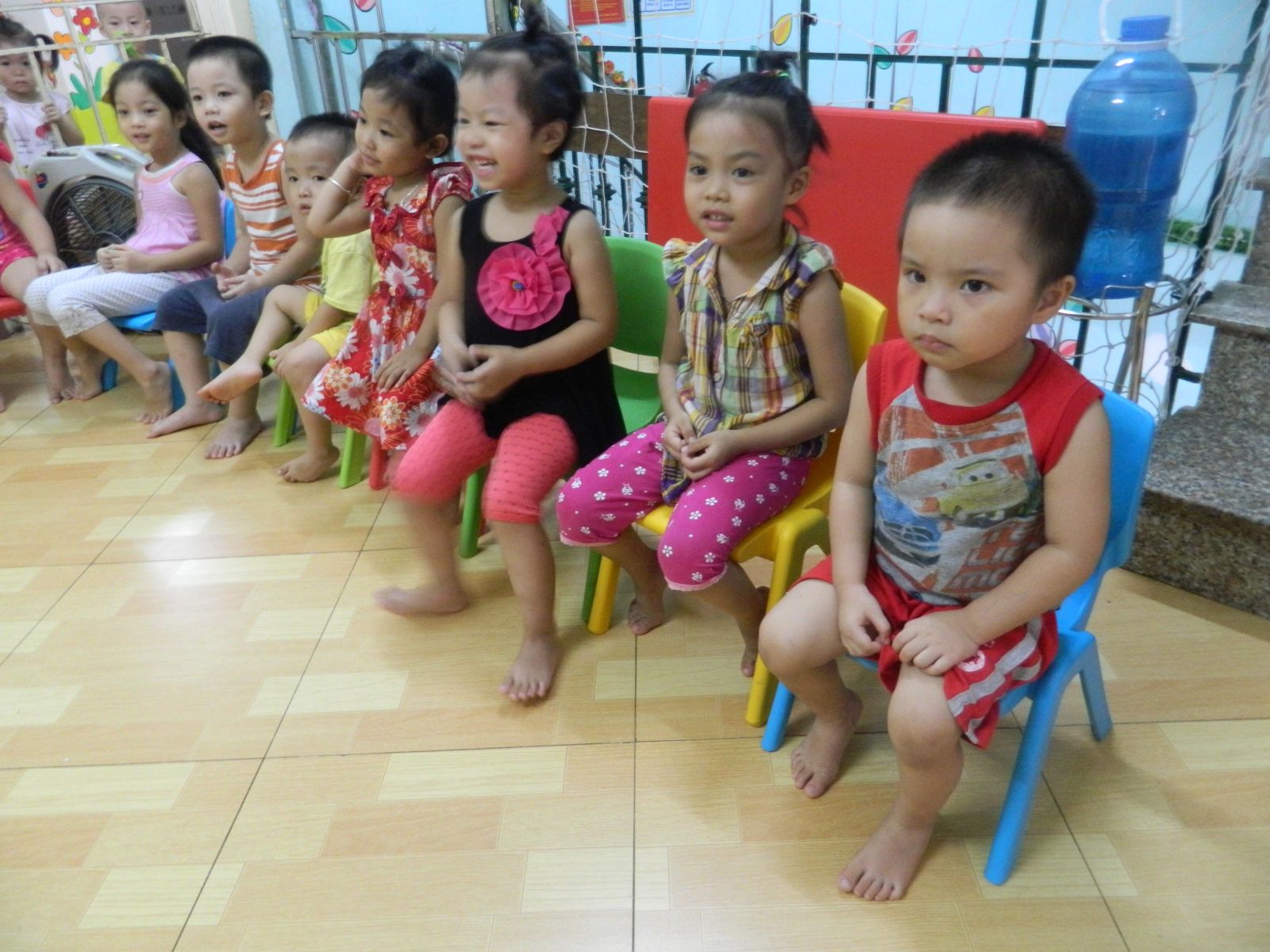 - Mỗi bé được trang bị riêng đồng phục sinh hoạt, giường ngủ, chăn, gối, khăn, cốc. Đồng phục sinh hoạt sạch sẽ, thoáng mát giúp bé thoải mái trong các hoạt động học tập và vui chơi.