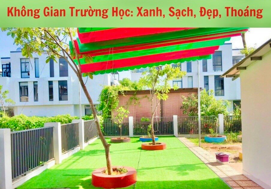 - Phòng học thoáng mát, sân chơi rộng rãi có cây xanh.