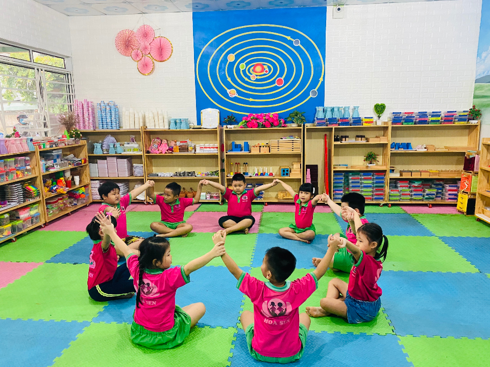 Chương trình học tại trường mầm non Hoa Sen ứng dụng phương pháp Montessori, STEAM, toán trí tuệ mang lại cho trẻ cảm giác vui vẻ thích được đến trường thích được đi học với phương châm học bằng chơi, chơi mà học.