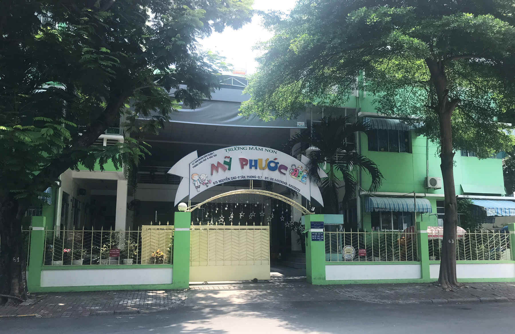 Trường mầm non Mỹ Phước có 8 phòng học, một lớp từ 20~30 cháu. Trẻ học hệ bán trú. Thời gian 7:30~ 16:30, từ thứ Hai đến thứ Sáu. Trường nhận trẻ người Việt và nước ngoài từ 1 ~ 5 tuổi. Các cháu ăn tại trường, ngày ba lần (sáng, trưa, chiều); ngoài ra có thêm hai bữa phụ, nước trái cây hoặc sữa chua.