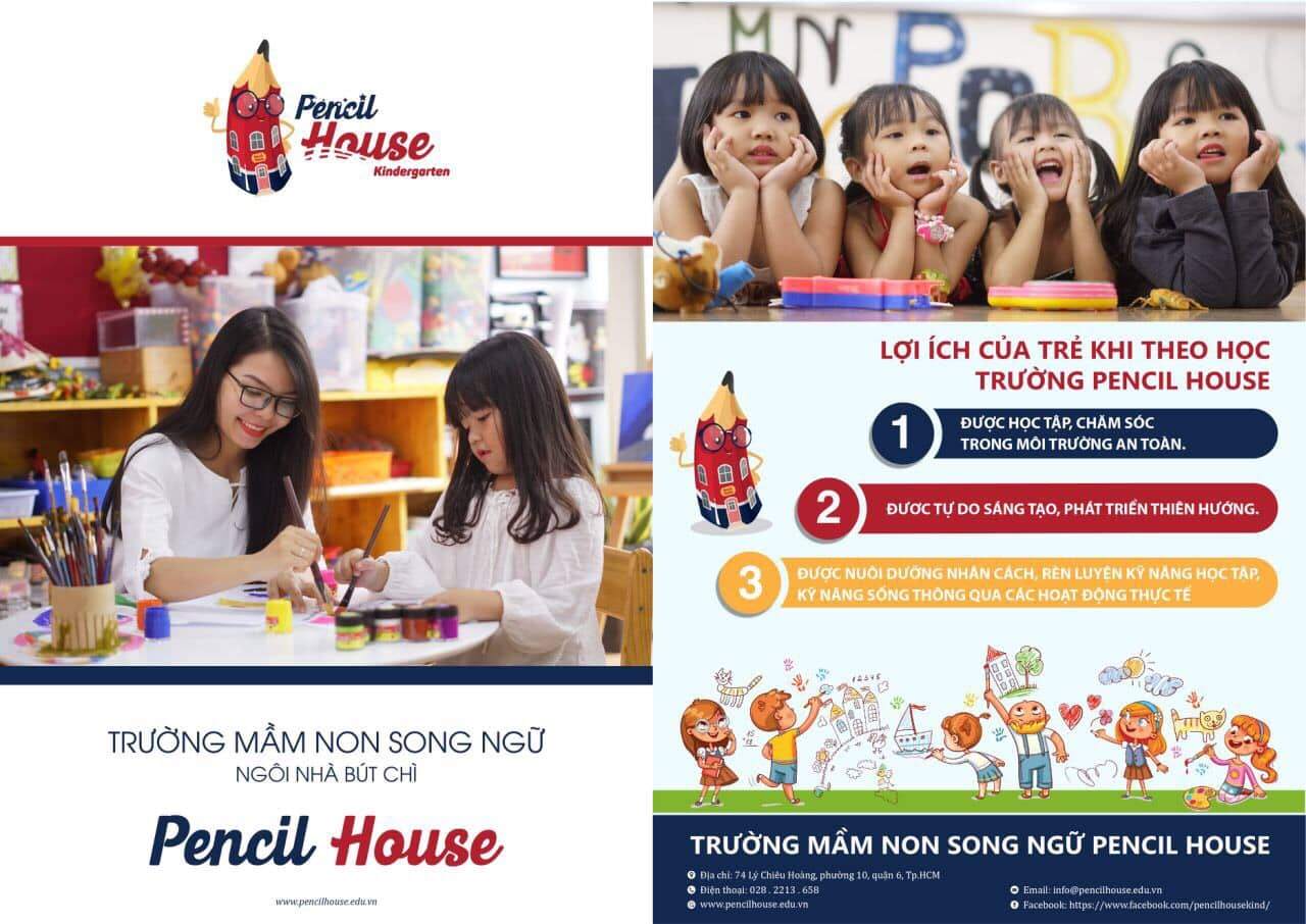 - Với mục tiêu giúp trẻ phát triển tốt song song hai ngôn ngữ tiếng Anh và tiếng mẹ đẻ, Pencil House chọn lựa dạy trẻ tiếng Anh bằng những phương pháp tiên tiến nhất. Học sinh học trong môi trường tiếng Anh (tổng cộng 3 giờ mỗi ngày), với đội ngũ các giáo viên phụ trách lớp học là giáo viên nước ngoài, có trình độ và kinh nghiệm giảng dạy.