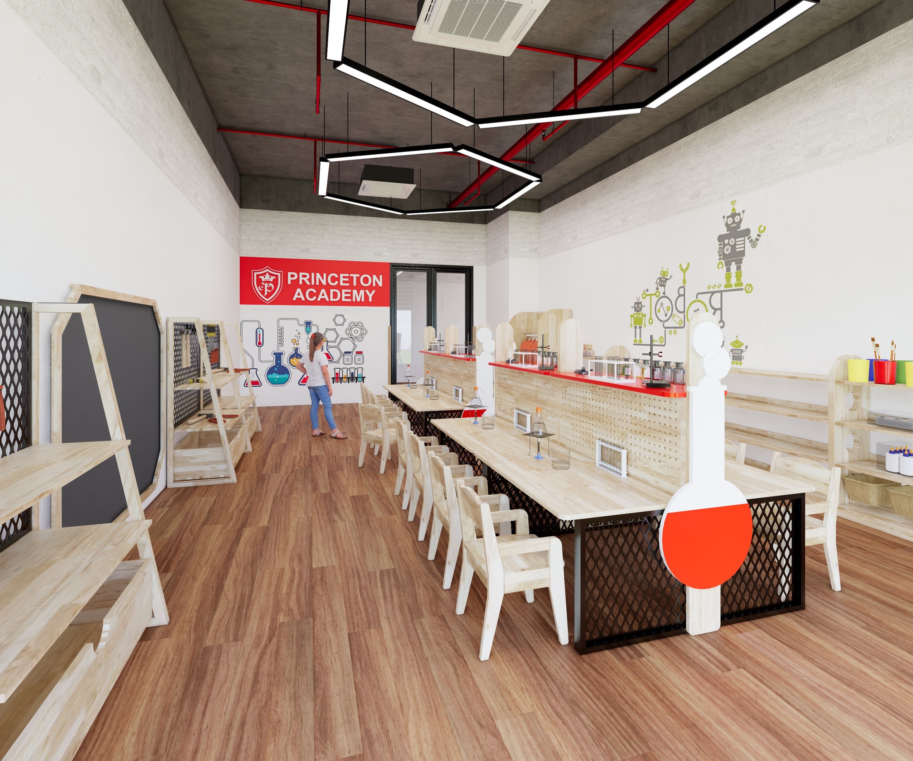 Trường Mầm non Princeton Academy - Duy Tân gồm các phòng học nhiều ánh sáng, giáo cụ học tập phong phú, hệ thống cơ sở vật chất thiết kế hiện đại