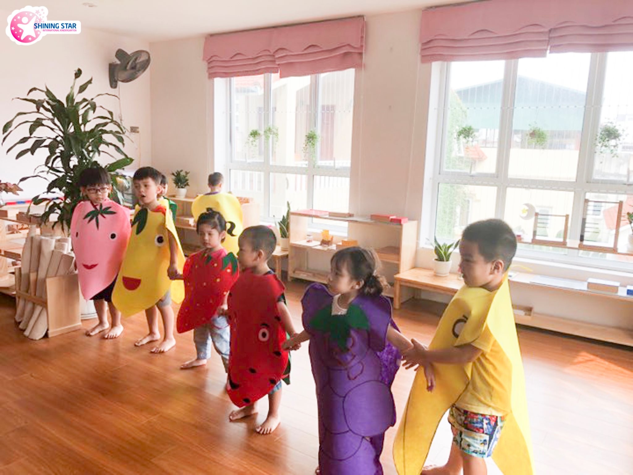 Mỗi lớp học đạt chuẩn Montessori ở Shining Star có diện tích từ 70m2, được thiết kế thân thuộc và thoải mái như ở nhà. Lớp học sơn màu tươi sáng, lát sàn gỗ sạch sẽ, trang bị hệ thống điều hòa 2 chiều, các thiết bị làm sạch không khí, làm sạch đồ dùng cá nhân như: máy lọc khí, máy hút ẩm, máy sấy cốc, máy hấp khăn, máy sấy bàn chải đánh răng…