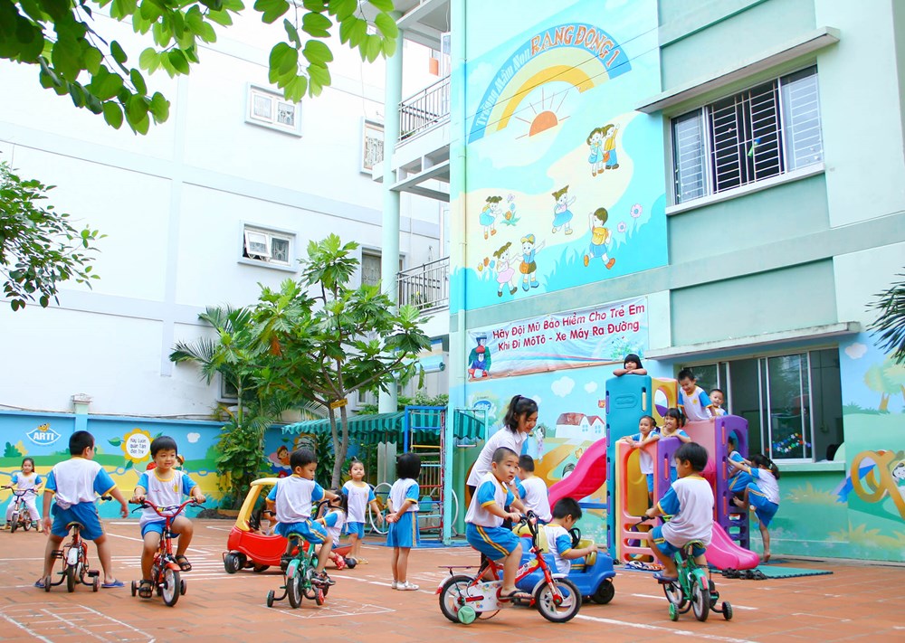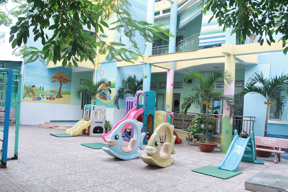 Về chất lượng chăm sóc giáo dục trẻ, nhà trường thực hiện chương trình chăm sóc theo hướng mới tại 2 lớp nhà trẻ và 7 lớp mẫu giáo; đồng thời nhà trường thực hiện tốt các chuyên đề trong năm như làm quen văn học – chữ viết, hoạt động thử nghiệm khám phá…Đặc biệt, chú trọng giáo dục lễ giáo vào các hoạt động học tập – vui chơi hằng ngày của trẻ. Bên cạnh đó, nhà trường còn thực hiện tốt việc xã hội hóa giáo dục với các ban ngành, lãnh đạo Sở, Quận ủy