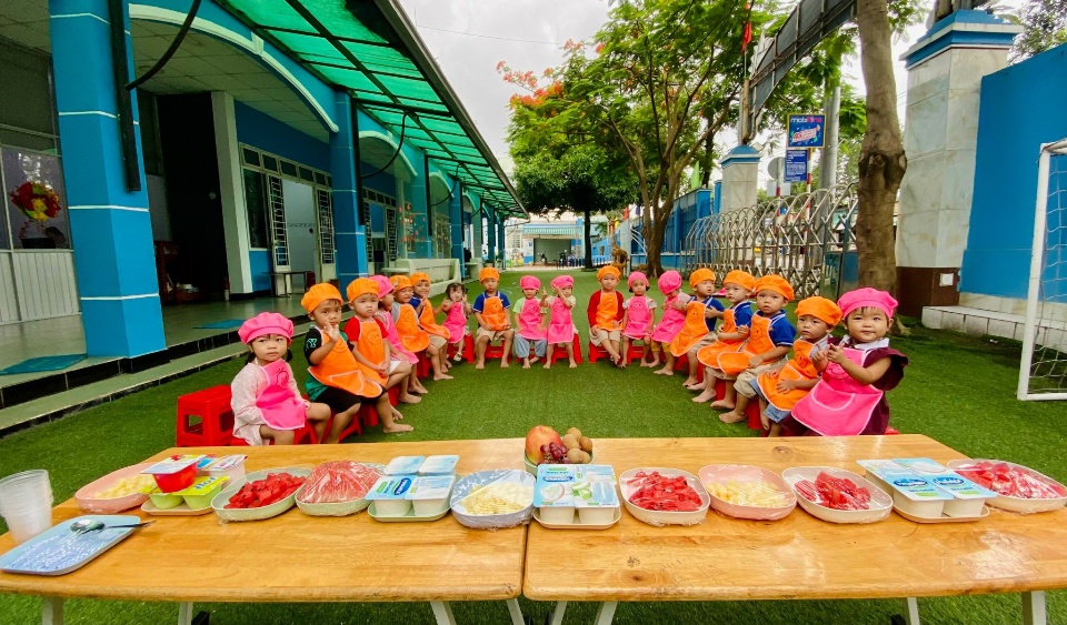 Thực đơn được Tổ nuôi dưỡng lên phong phú đa dạng theo mùa vừa đảm bảo các chất dinh dưỡng và vừa kích thích trẻ ăn ngon miệng.