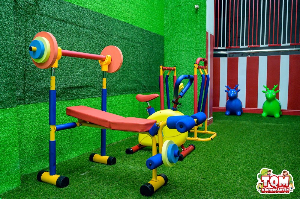Trường mầm non TQM có 5 phòng học, 2 phòng rộng 35m2 và 3 phòng 22m2, khu vui chơi, phòng tập Aerobic, nhảy múa