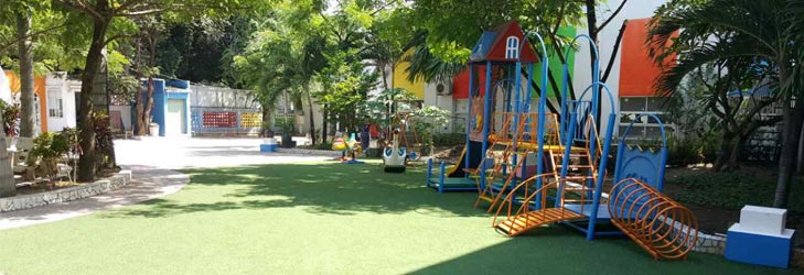 Khu vực sân chơi ngoài trời rộng thoáng với thiết bị vui chơi như khu cầu tuột liên hoàn xích đu… và đặc biệt khu đất dành riêng cho trẻ hoạt động trồng cây, chăm sóc cây. Nhà trường còn trang bị hệ thống camera quan sát toàn bộ các phòng học để phụ huynh có thể theo dõi con học tập, vui chơi tại Abi.