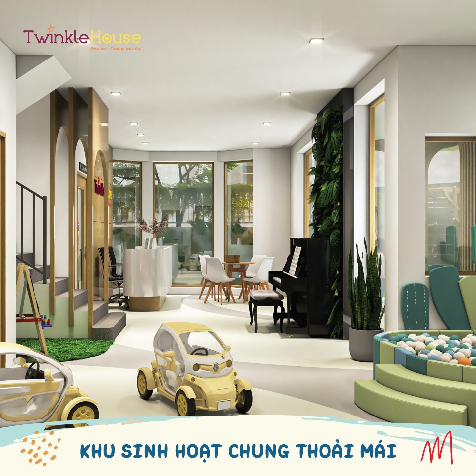 Trường mầm non Twinkle House International Pre-school xây dựng môi trường giáo dục phát triển lý tưởng, với không gian rộng, View thoáng mát, tràn ngập ánh nắng tự nhiên cùng cơ sở vật chất mới và hiện đại. Nhà trường được trang bị đồ chơi phong phú, chất liệu đảm bảo an toàn, kích thích khả năng sáng tạo của trẻ.