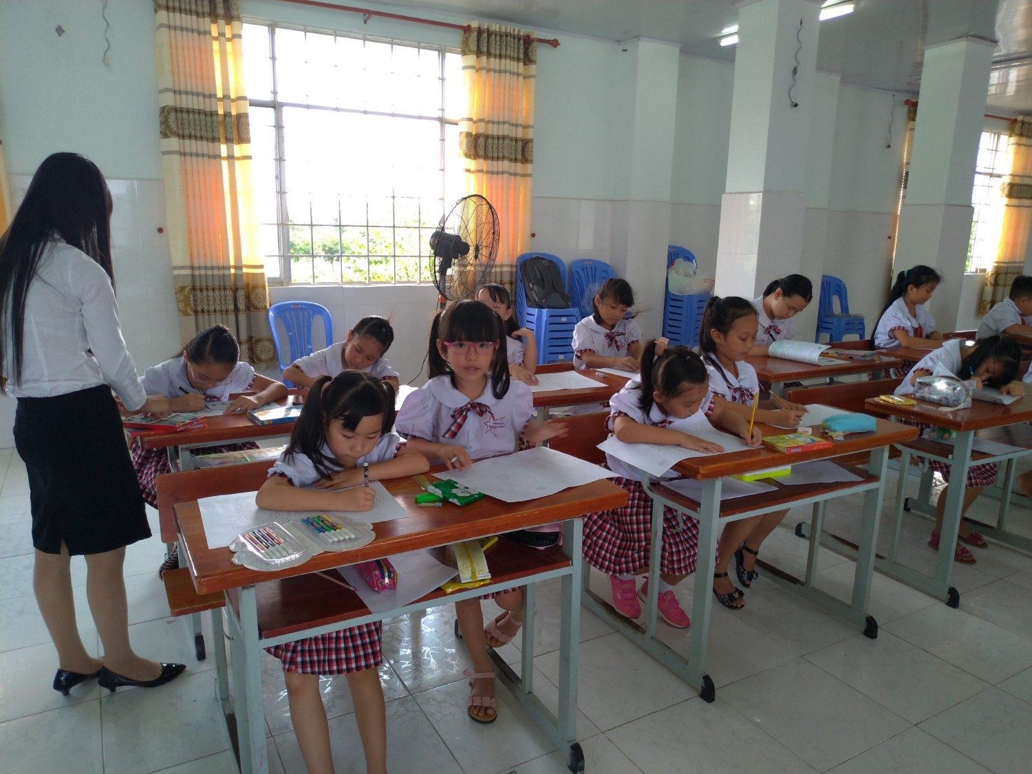 - Nhà trường có hệ thống camera để cán bộ quản lý và cha mẹ học sinh quan sát trực tuyến hoạt động của bé và của giáo viên trên lớp.
