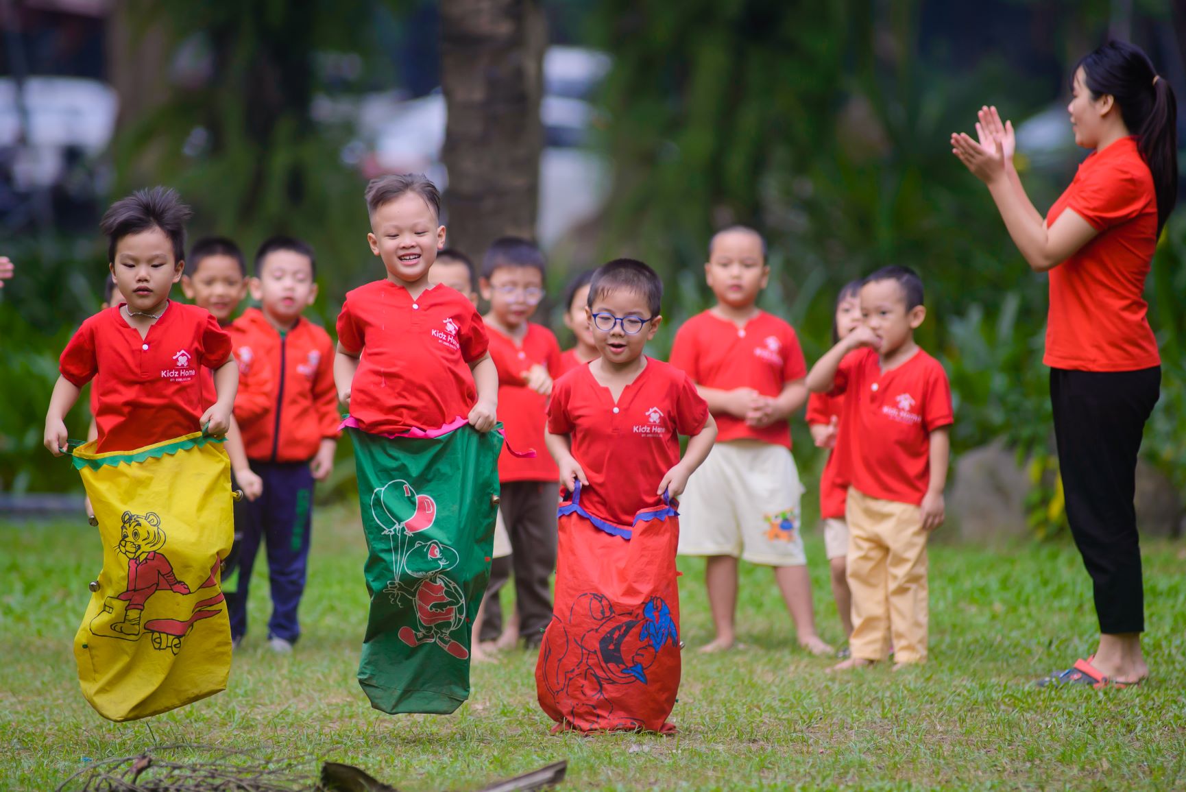 "Các cô trẻ, nhiệt tình yêu quý trẻ con, chuong trình giáo dục phong phú con đc học và chơi rất thoải mái"