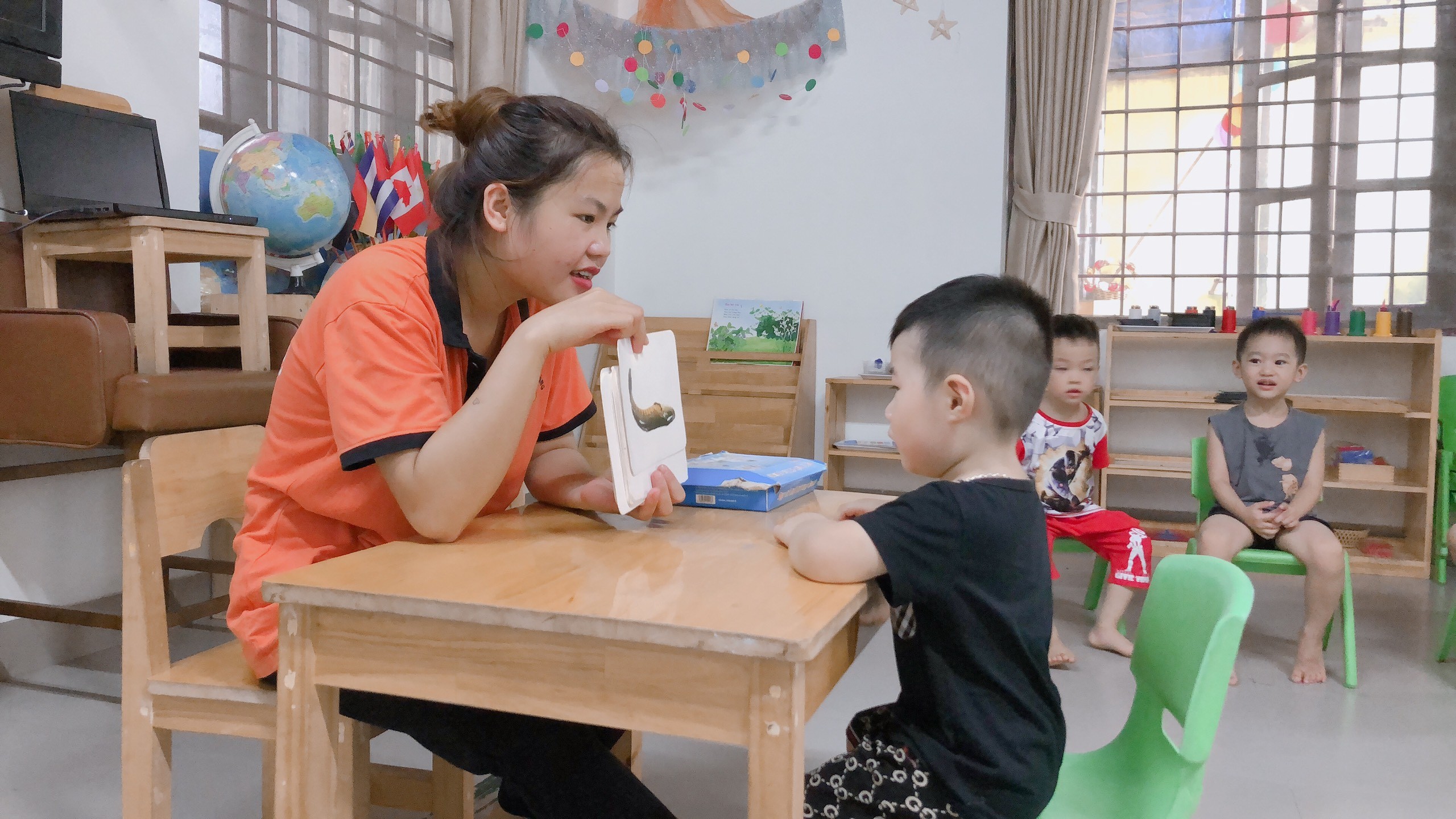 "Môi trường thân thiện ,Không gian phòng học rộng, có lót sàn gỗ,có camera mình rất yên tâm."